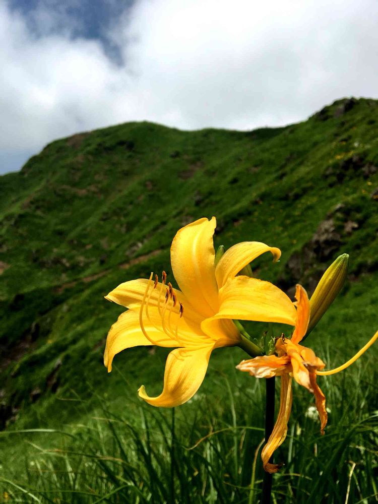 ニッコウキスゲ✨バックの山に黄色が映える〜〜(´∀`*)
