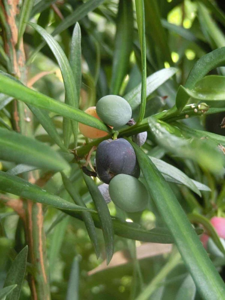 近所のイヌマキの実が赤黒く色付き