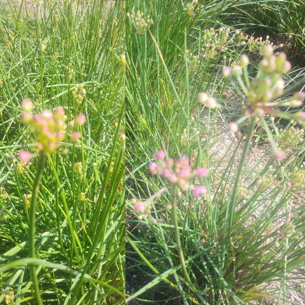 実家の菜園場にらっきょの花が咲きそうです😊 父はもう自分の体がやっとで ラッキョも植えぱなしです。食べるだけ貰って帰ります😊