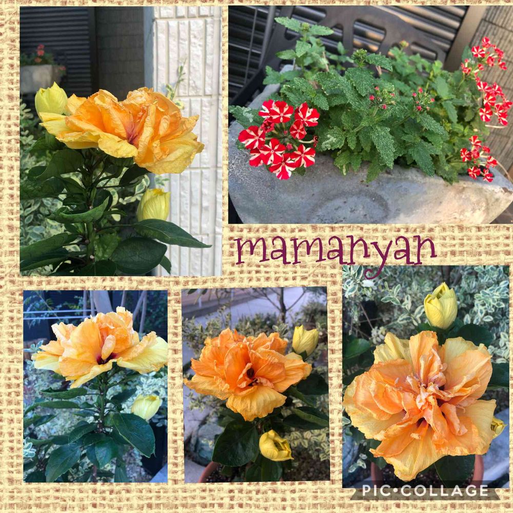 mamanyanさんの小さな庭,バーベナ,ハイビスカス 八重咲きの投稿画像