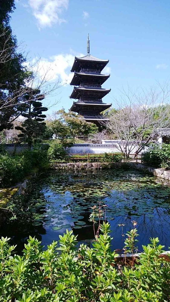 聖武天皇の発願にて741年に創建なるも南北朝時代に焼失し江戸中期1844Y再建、H=34.32m
