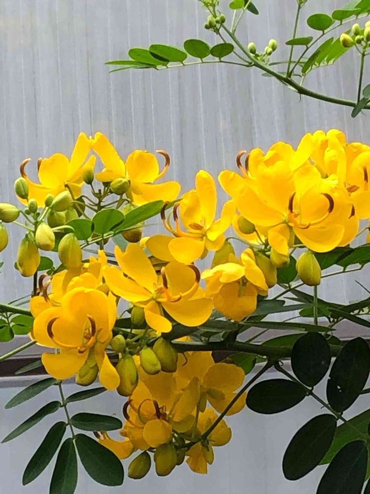 おはようございます。散歩道のお庭でアンデスの乙女(カッシア)が満開です。