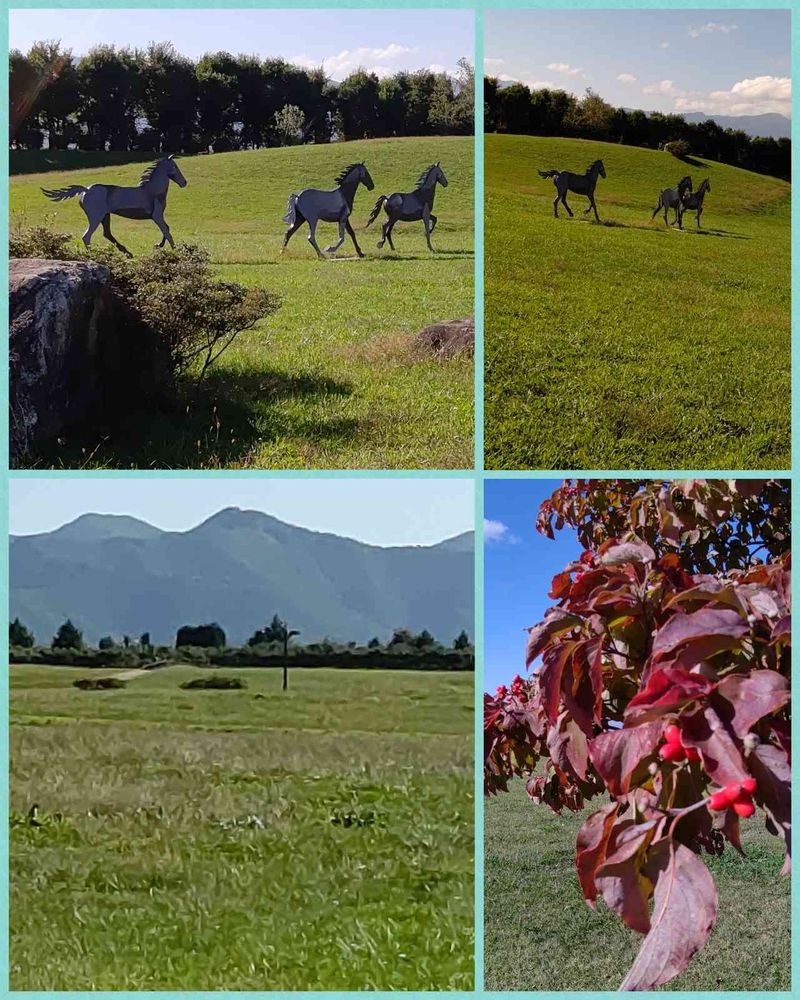 以前芝桜が一面に咲き誇っていた場所が現在は、緑の草原に変化していました。