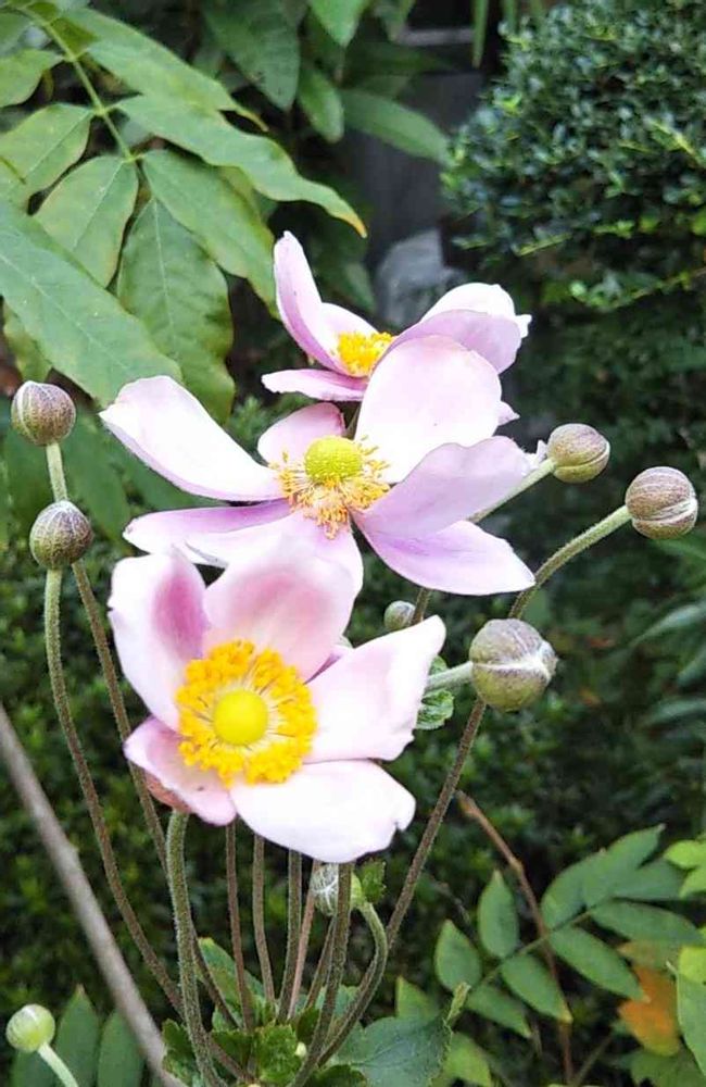 小さな庭,シュウメイギク,秋風の中での投稿画像