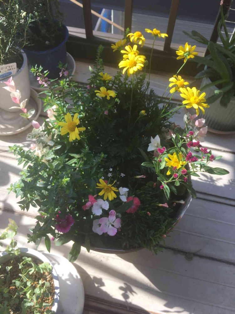 きりん♡さんのバルコニー/ベランダ,ナデシコ,ユリオプスデージーの投稿画像