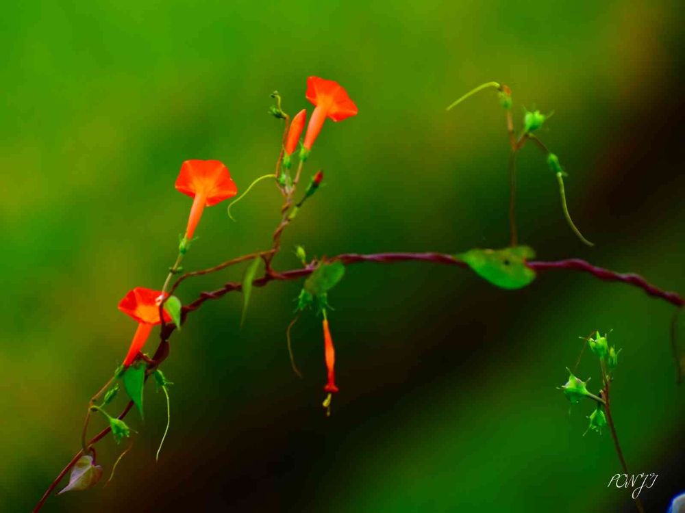 ミニミニミニ朝顔みたい…つるが伸びて…赤い小さな花をつけて…道端で私たちを見物してるのよ…🤭…🌸💮