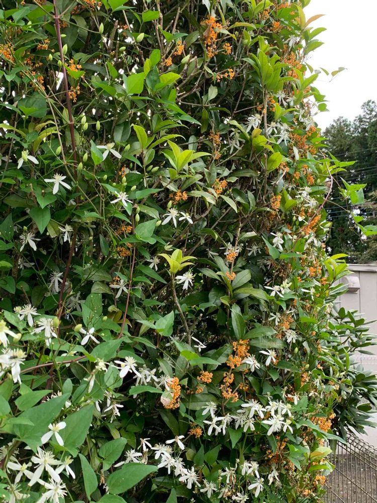 金木犀に絡み付く仙人草
