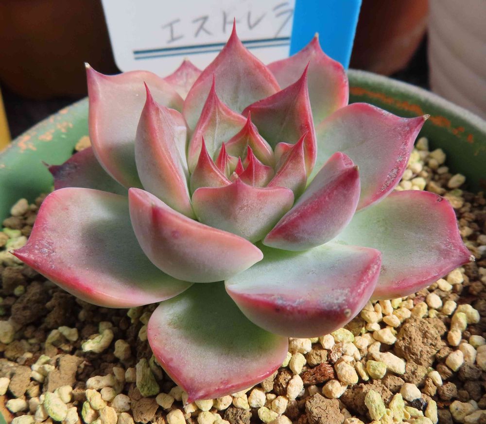 7月にもpostしたエストレラ。3か月で色がかなり変わった。冬に向けて色が濃くなっていくのが楽しみなエケベリアの一つ。