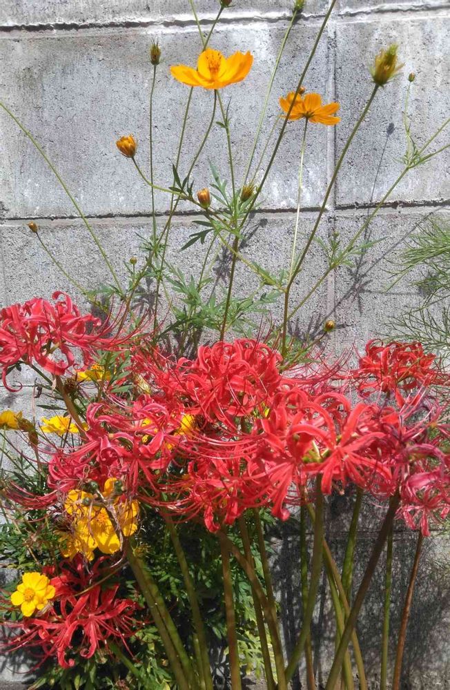 キバナコスモス(黄花秋桜),彼岸花(ひがんばな),散歩道の投稿画像