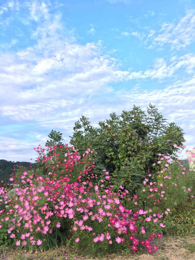 青空にピンクのコスモスが映えてますね✨綺麗(*˘︶˘*).。.:*♡ •*¨*•.¸¸☆*・゚