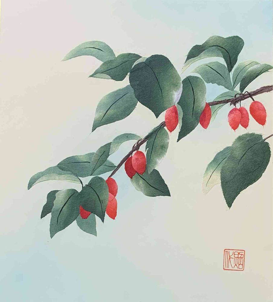 照代のちぎり絵「クコの実」