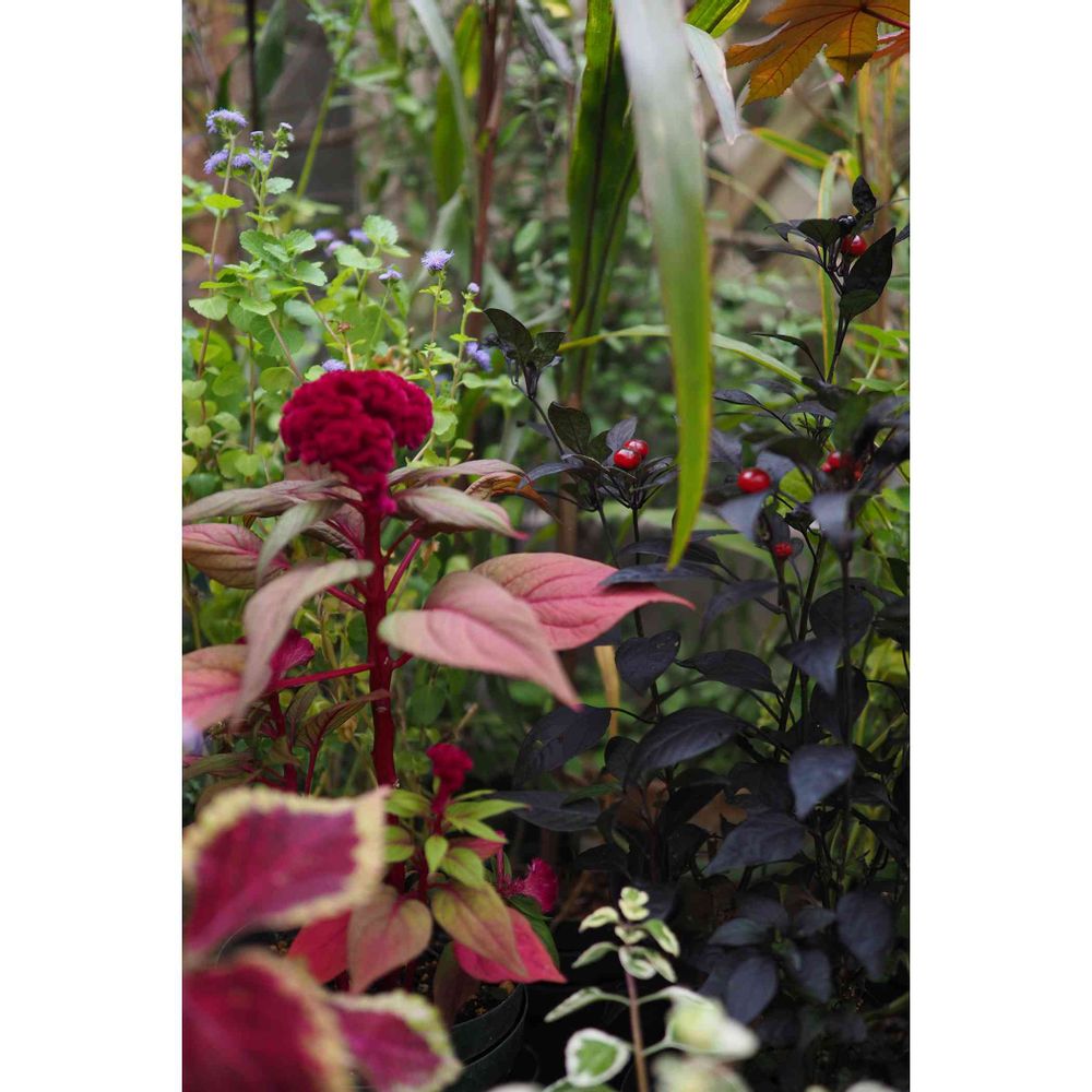 メインの花苗の中に紛れ込ませたド派手な赤葉ケイトウです...
