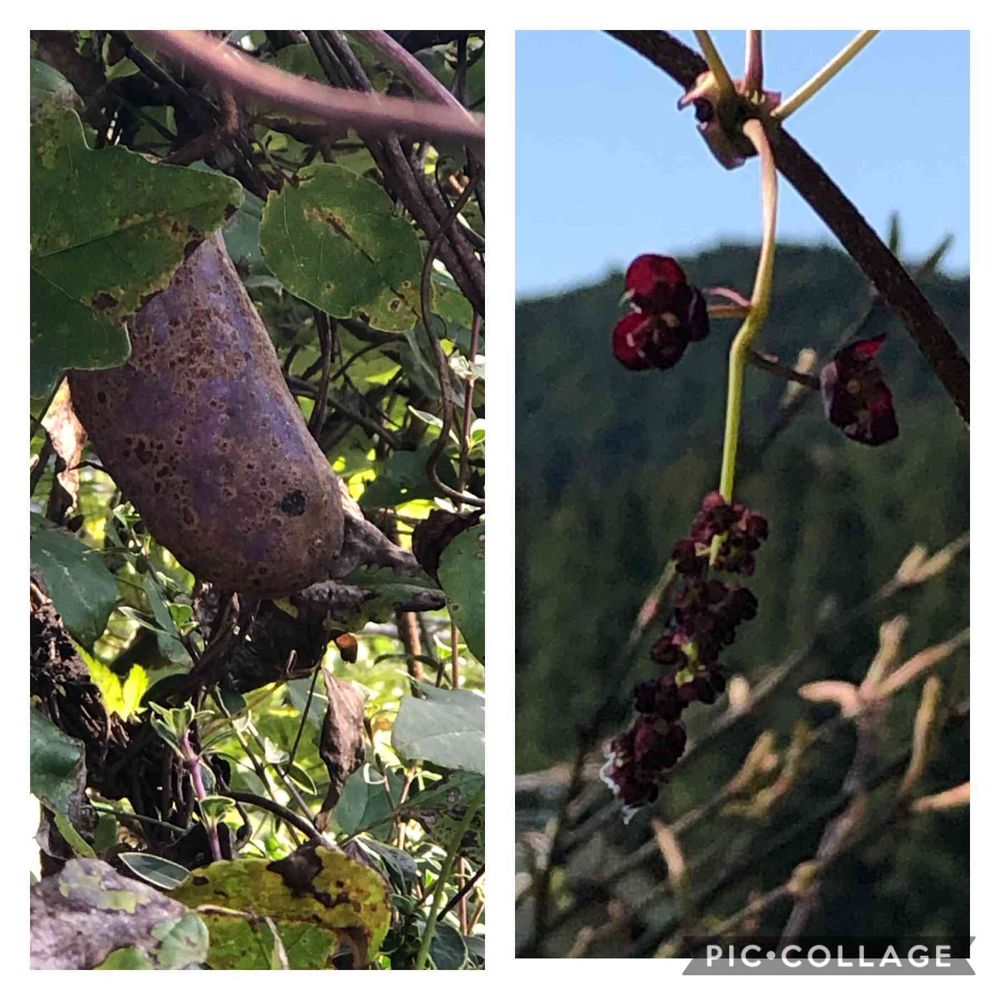 山でよくアケビを見ますが、だいたい高いところにあって、獲れな〜い(⌯︎˃̶᷄ᗝ˂̶̥᷅⌯︎)