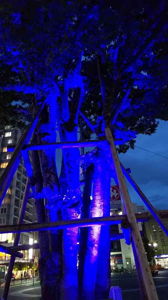不気味なブルーライトアップ