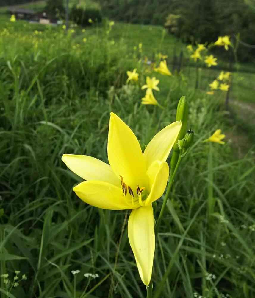 山から下りてきたらいっぱい夕菅(ユウスゲ)が咲いてました🌼💕