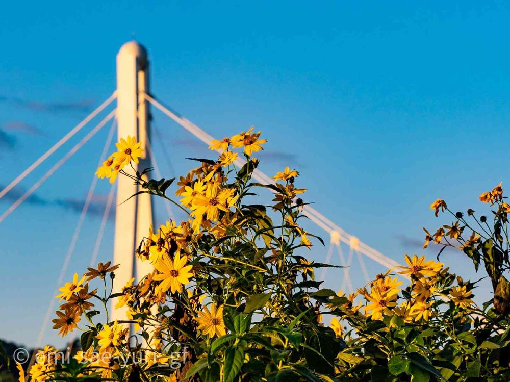 9月28日 日野市の万願寺歩道橋近くの浅川日の出 直後 菊芋の花