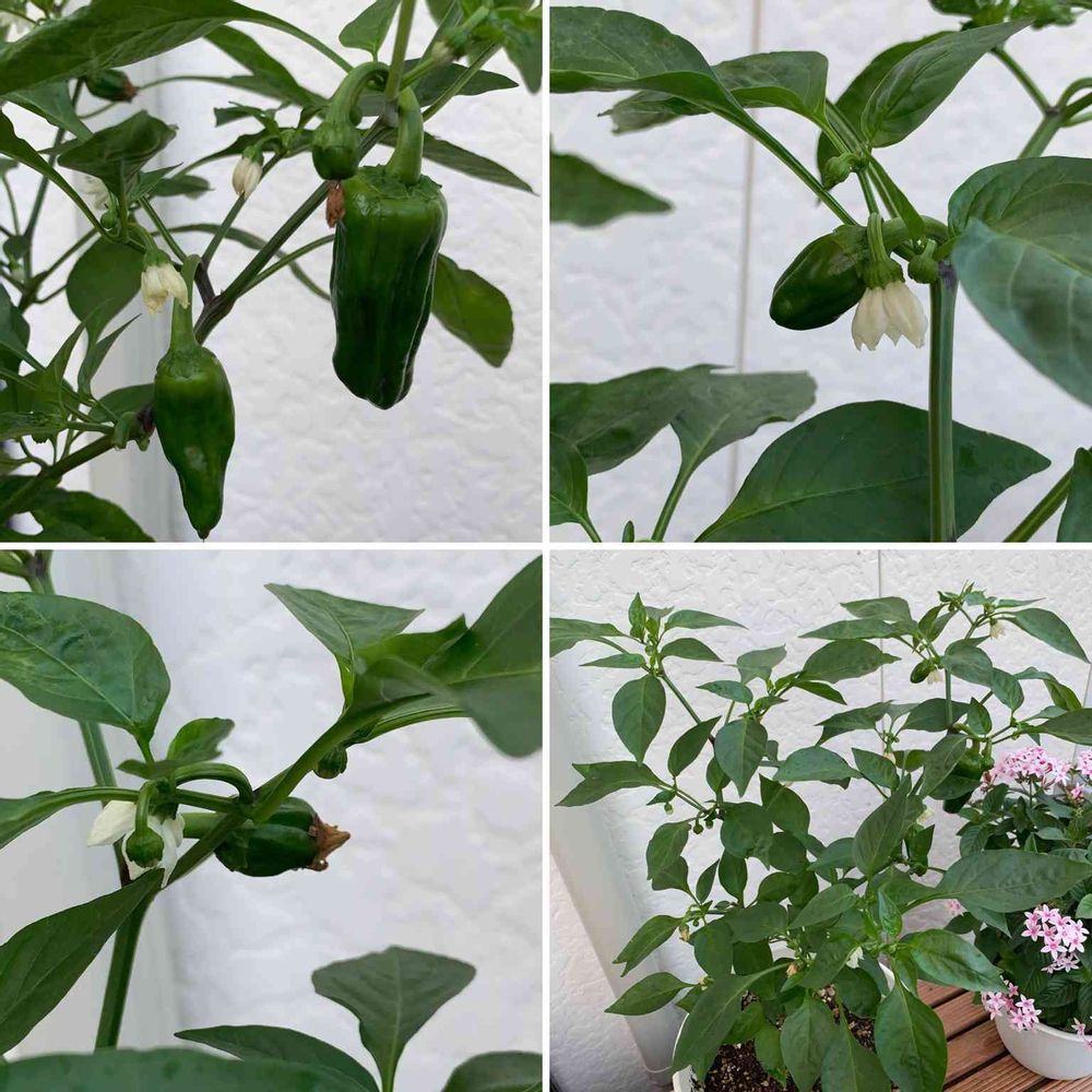 挿し芽のピーマンも、少しずつ実が増えて来たー✨