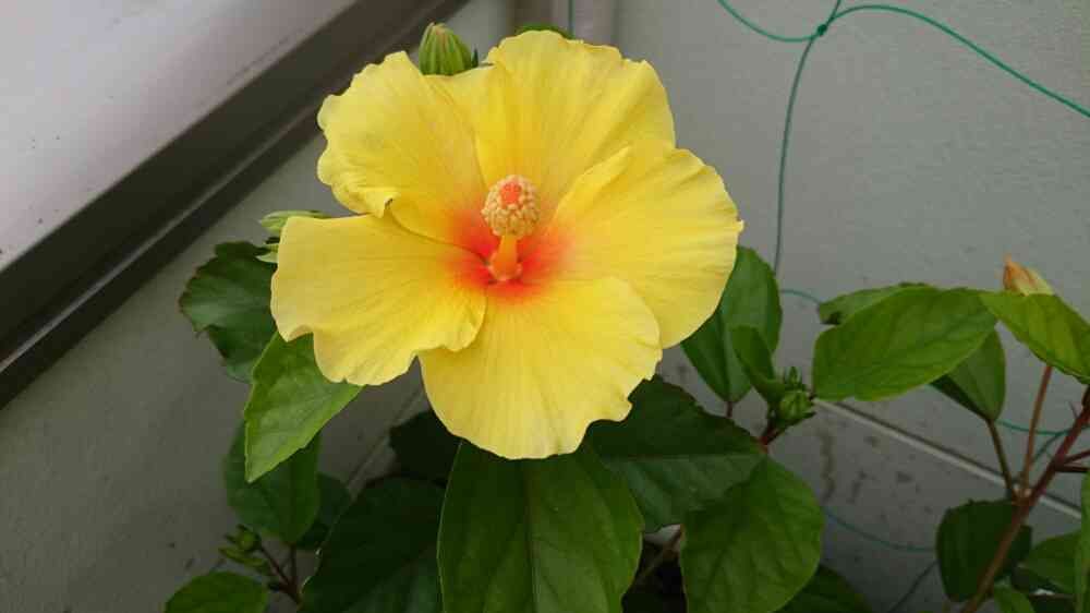 黄色のハイビスカス🌺も、ピンクに遅れること、ようやく咲きました。😆🎶