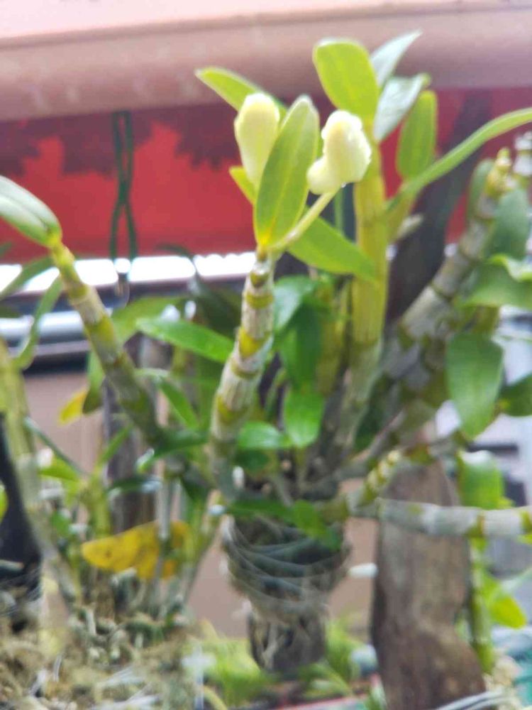 デンドロビウムに二ヶ月早く花芽が付きました。一ヶ月前に苔鉢から流木に植え替え、春から今まで外に置いてます。去年は晩秋まで外、それから余り使わない子供部屋の窓に移動、年明け咲いた様な気がします😃
