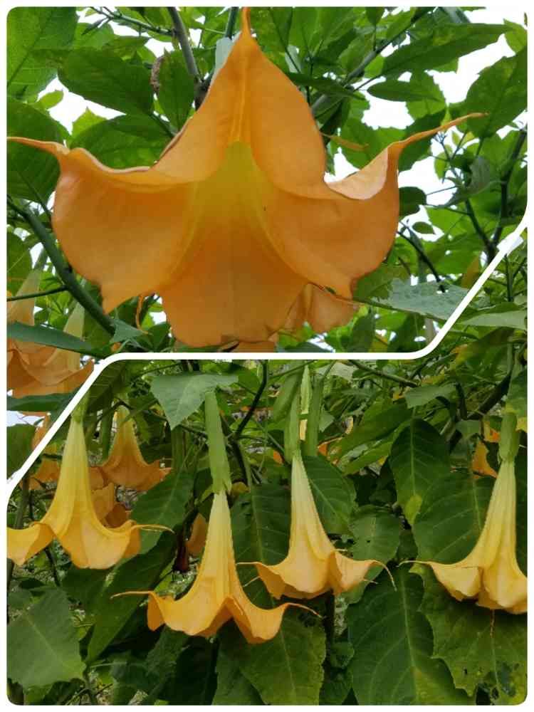 裏庭にオレンジの可愛いトランペットがいっぱいぶら下がっていました💛