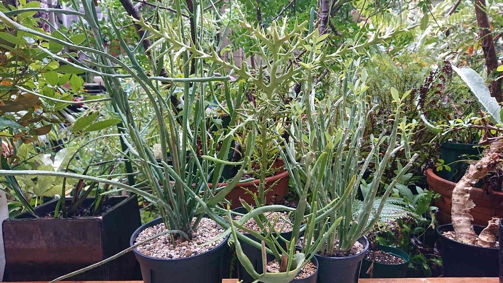 ユーフォルビアは暑さには強いので、離脱者はいないですよ。あ、オベサを1つ腐らせてしまったけど、暑さではなくて水の問題ですね。多肉は温度もですけど、水加減に要注意です。