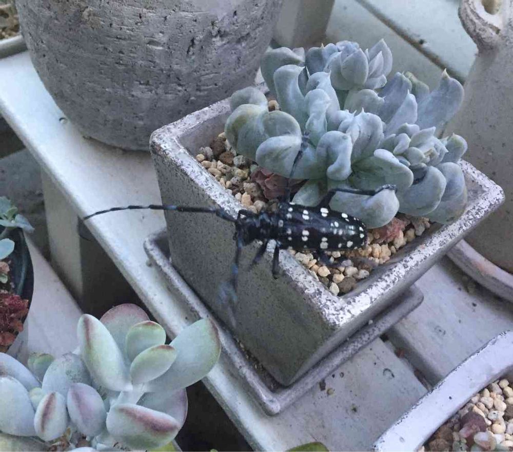 硬そうなカミキリムシが、上を歩くだけでも 多肉ちゃんは傷つきそうですよねー😅