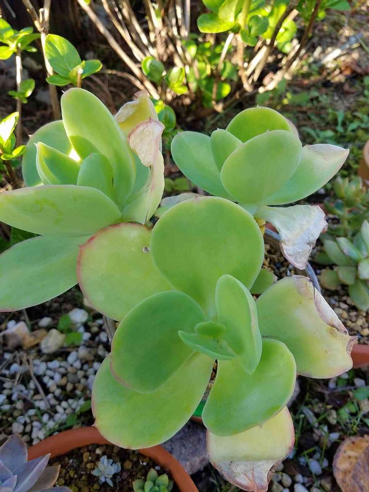 葉っぱは肉厚で硬いんだけど、端から枯れてる。。
