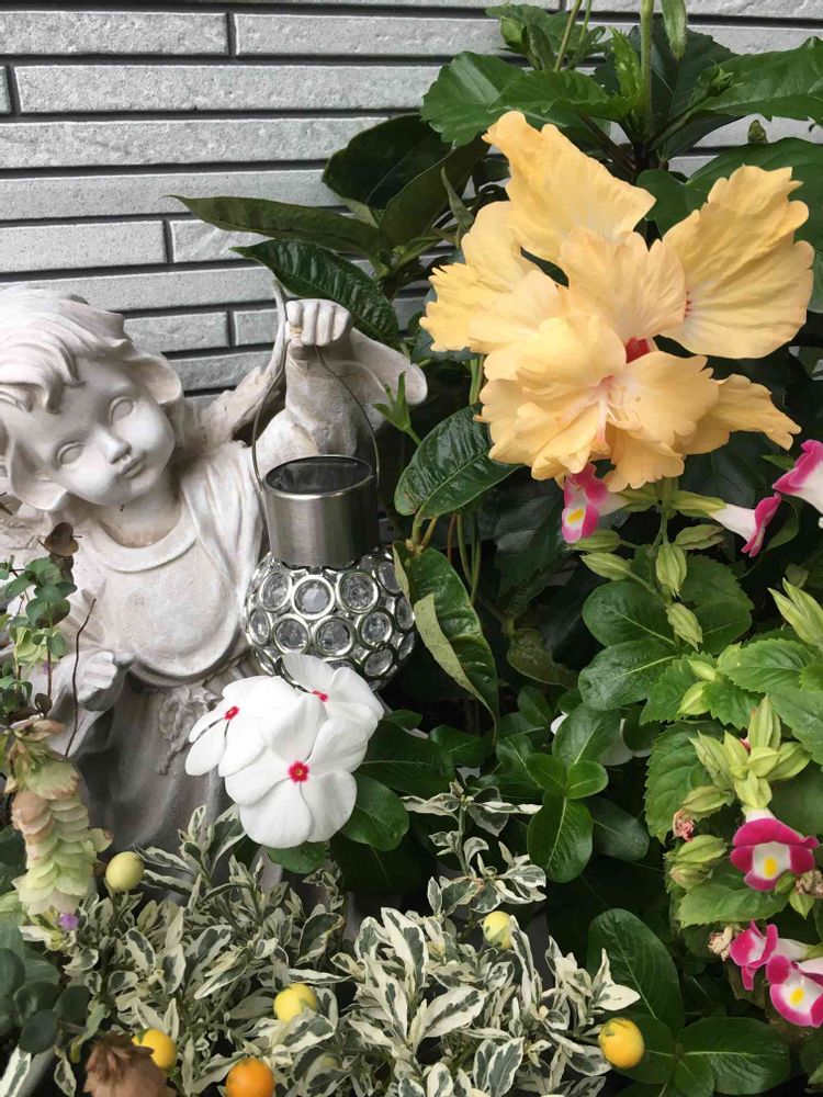 台風に備え、軒下に天使👼と避難💦