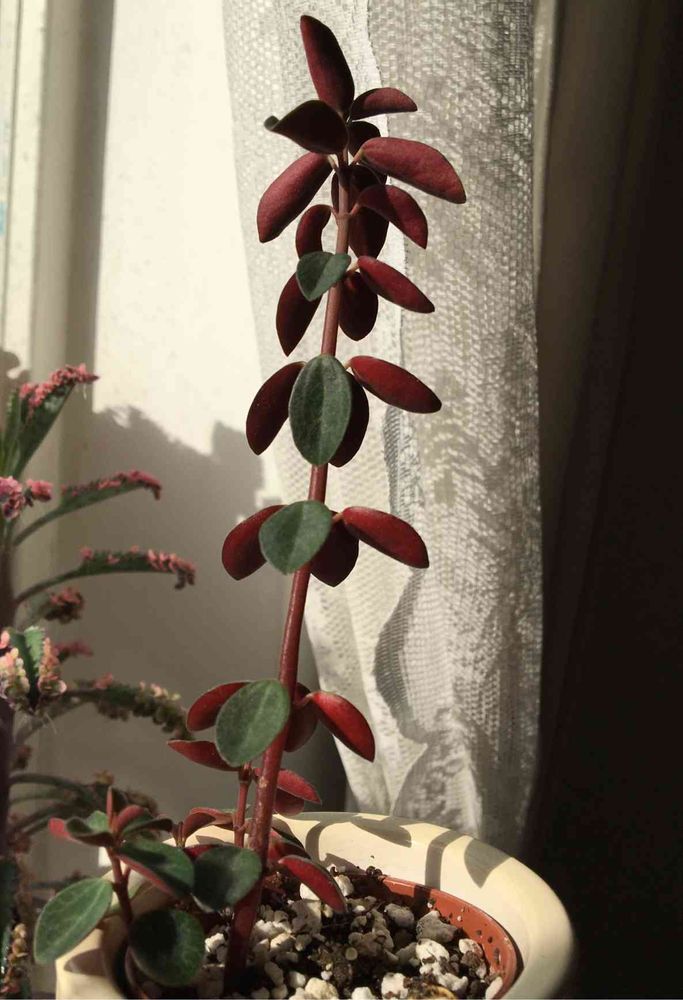 ペペロミア レッドログ。今年初夏にFBのスワップグループで交換して手に入れたものです。濃い緑と葉裏の赤が良いし、マットな葉は厚みがあって、プクッと触り心地いいです。小さい一本だけでしたが、順調に育って根本からも2本出てきてます。来年春に切って本数を増やそうと思ってます🌟