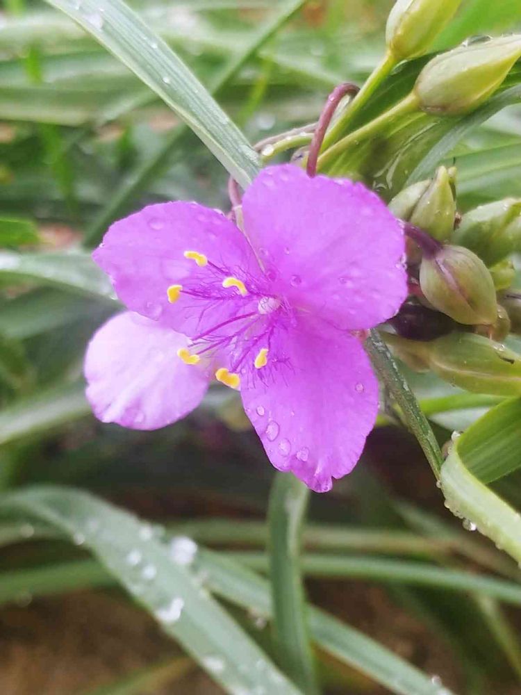 ムラサキツユクサさん、美人さんですよ✨✨雨の技あり🤣