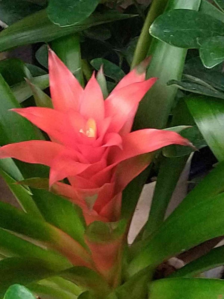 私の家にも、同じ色合いのグズマニアにがあります、長いこと咲いてくれてうれしいですが、花が散った後の処置が、大変なようでちょっと心配です