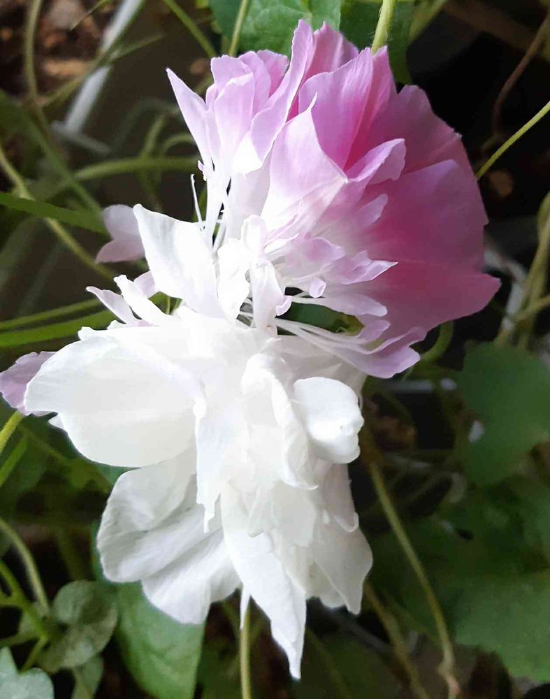 隣のつるを手繰り寄せ、ピンクと白を1枚におさめてみました。