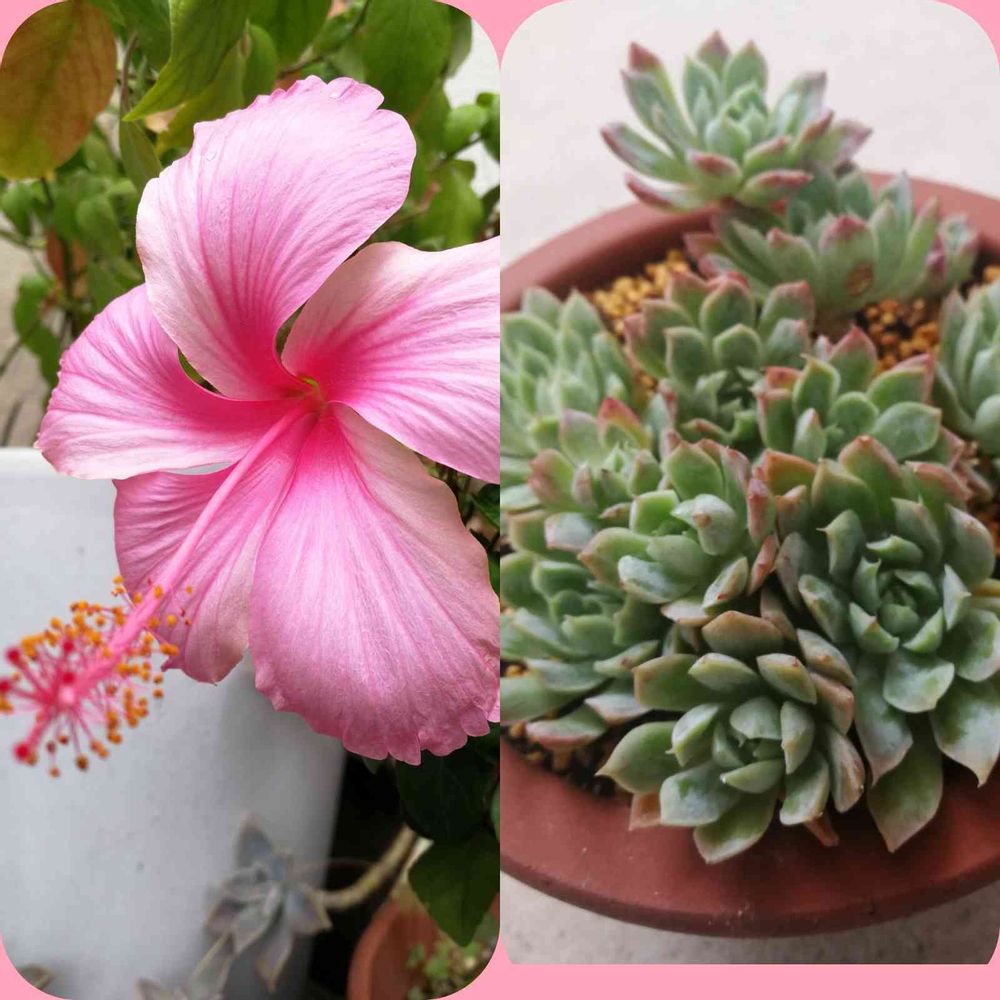 小さな庭,ハイビスカス・コーラルピンク,エケベリアブラッドブルワナの投稿画像
