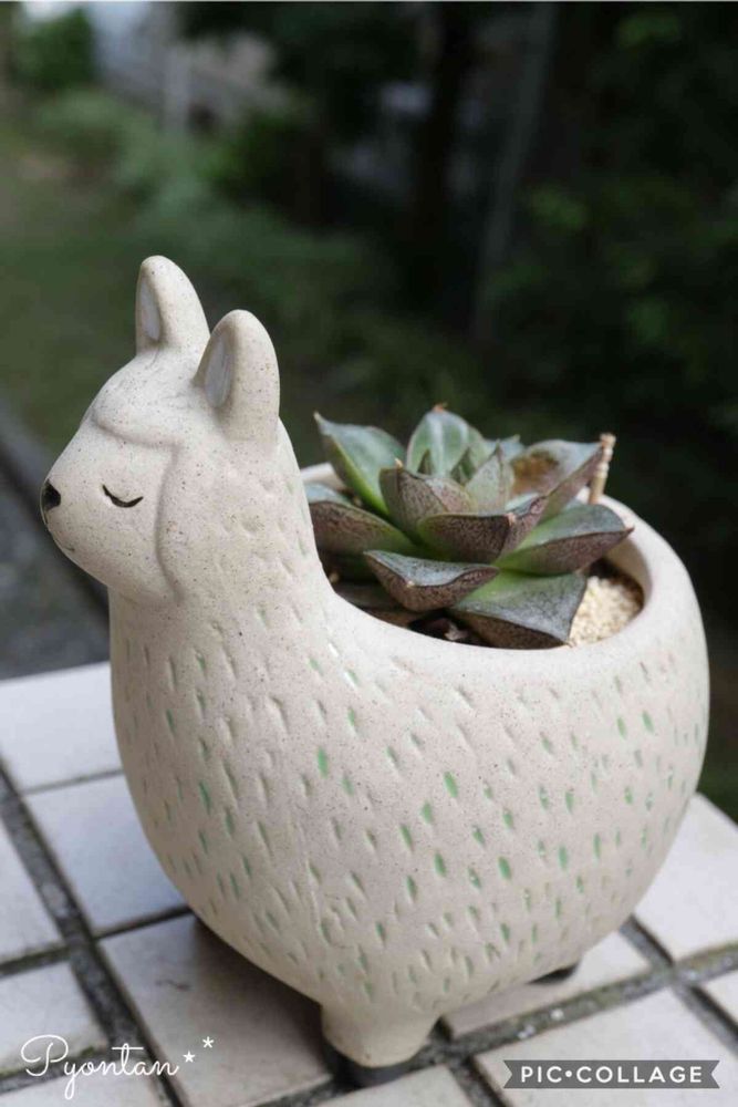 🦙の可愛い鉢に大和錦さんが乗ってるね(,,>᎑<,,)カワイイ*•.❥*