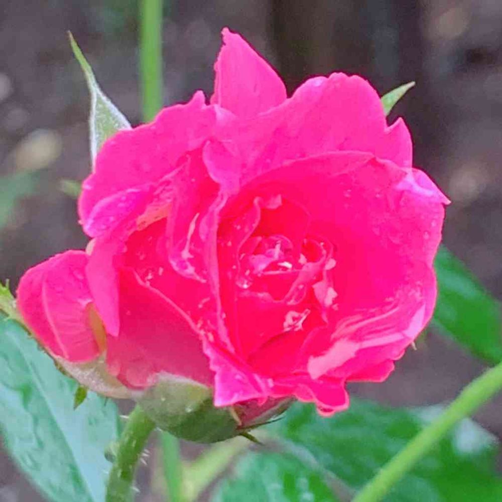 雨の中元気なバラ🌹