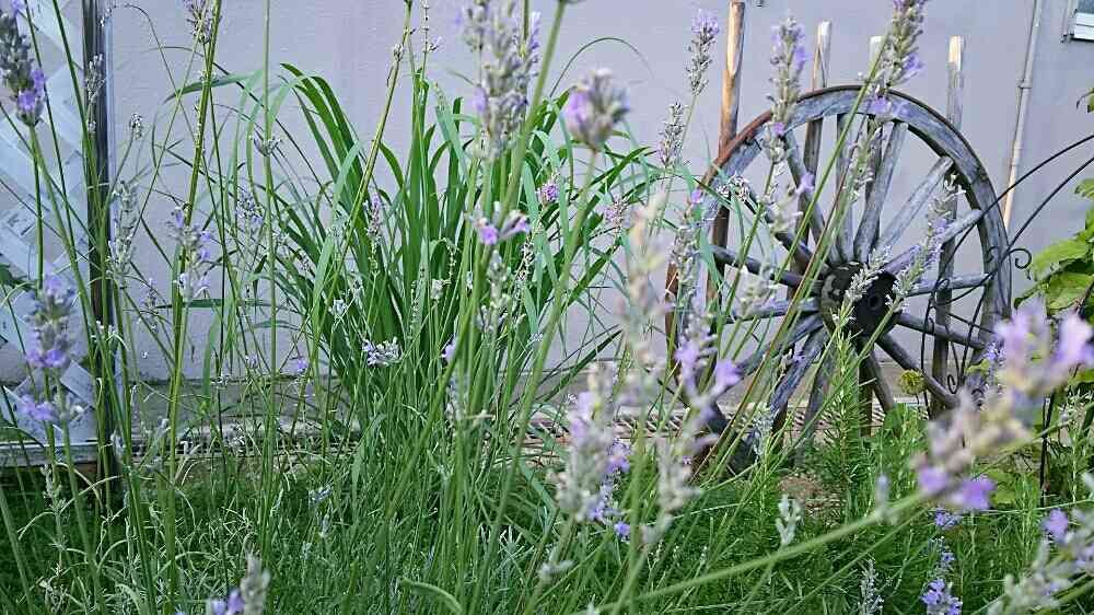 紫色の花は、手前にあるラベンダーです。この花壇は、いろいろなハーブを植えてあるのですが、みんな一斉に大きくなっちゃうので、毎年ごちゃごちゃしちゃうんですよ😅