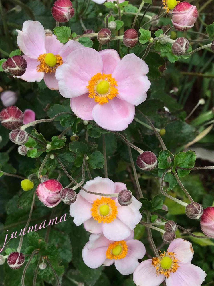 junmamaさんの小さな庭,シュウメイギク,小雨模様の投稿画像