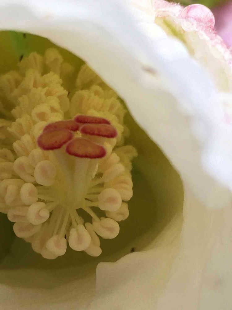 雨降りの中 まだ白い蕾の中をそっと覗いてみると…