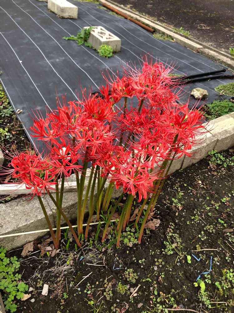 彼岸花でもいいと思います。お彼岸の頃いきなり茎が延びてきて花が咲きます。そろそろ終わりです。