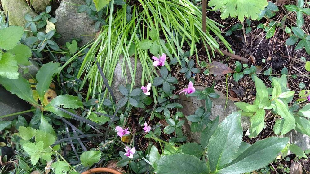 シクラメンの原種って、毎年出て来るの。高いそうだけど毎年、鉢植え買うよりいいかもね。