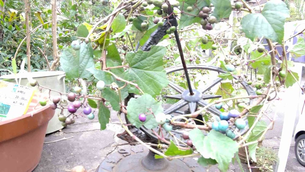 野ぶどうは色が緑、黄緑、ピンクっぽくなり紫色やコバルトブルーに、何とも素敵な色です、食べられないです