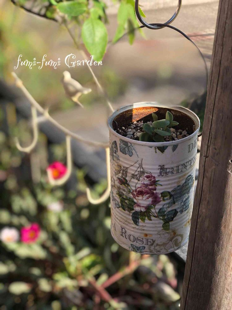 さん♥空き缶に素敵な柄を貼り付けるの?🙄💕 おしゃれな鉢に変わりますね😙👍