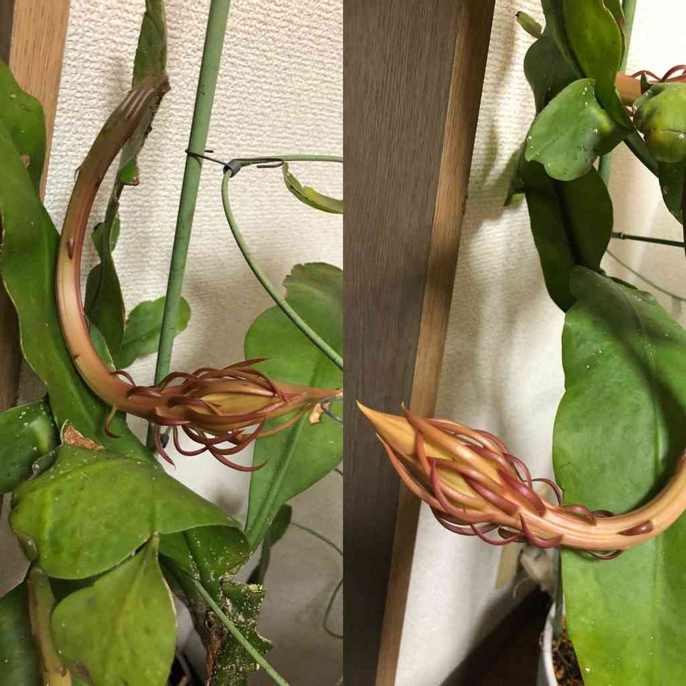 蕾が大きく膨らんで先っちょの方から白い(花びら)のが見えるとその晩に咲きますね〜🤗🤗🤗