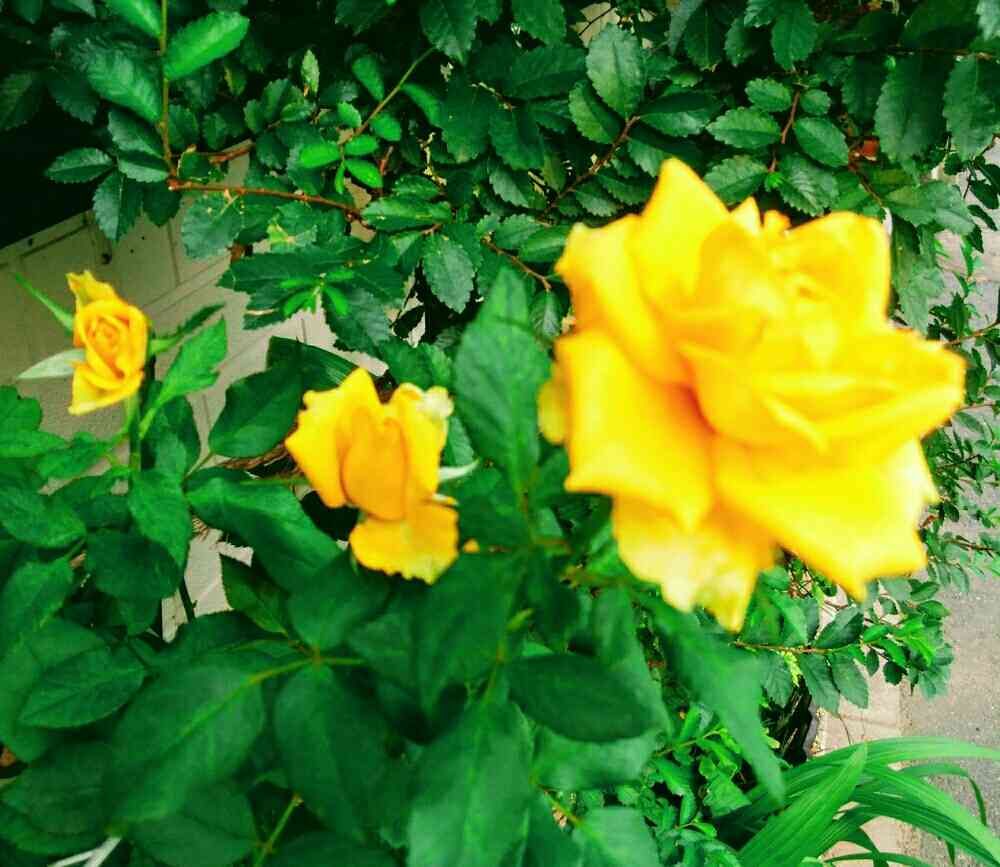 おはようございます!皆さんの素晴らしい薔薇に魅了され、唯一小さな黄色いバラがちいさな蕾を見せてくれています。😍😘ありがと✌🌸🌟🌟