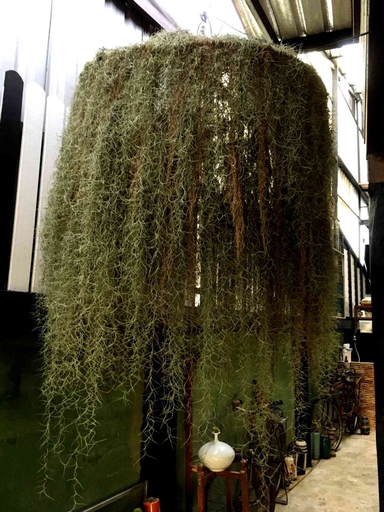 鉄材を曲げて溶接して、サルオガセモドキをこれでもかとぶら下げたもの。直径が1m近く、高さは1.8mくらいでしょうか。