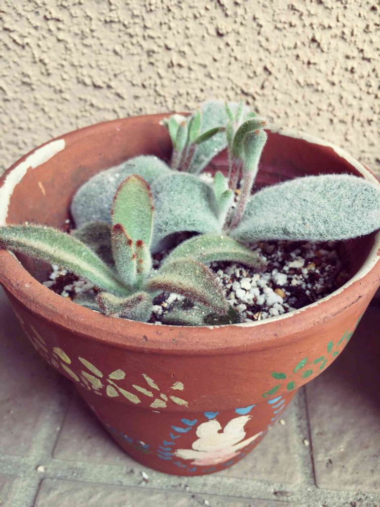 挿し木で増やしたいので福兎耳、星兎耳さん一緒に(๑˃̵ᴗ˂̵) どうか成功しますように❣️この鉢の絵は娘が小さい時描いた物٩(^‿^)۶