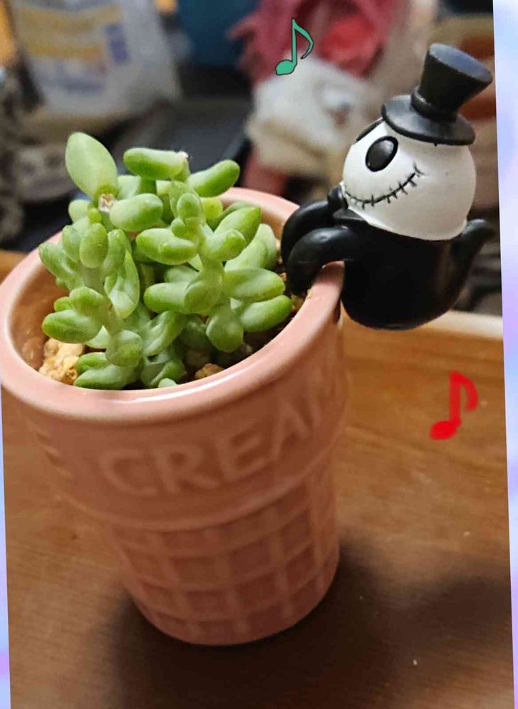 おはようございます😀徒長してたビアポップさんカットしてミニ鉢に植え替えました❤️ダイソーで見付けたハロウィングッズ😃
