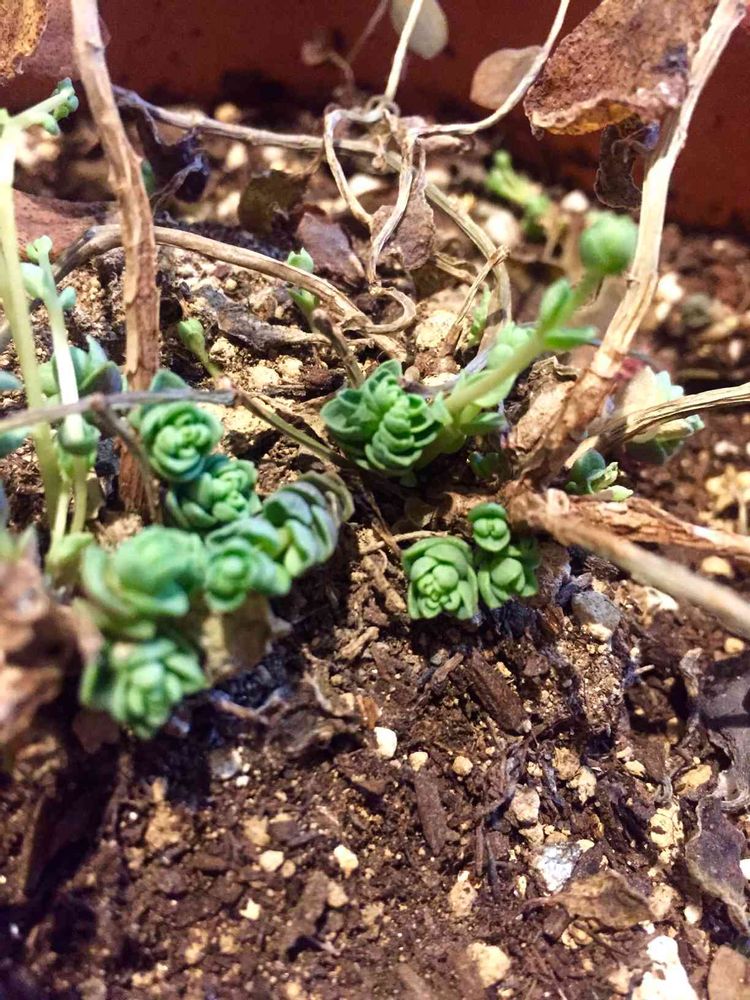 うちも同じく、枯れた葉の下にベビーちゃん達が。見つけた時は嬉かったですよ。多肉ちゃんの力強さに感激!