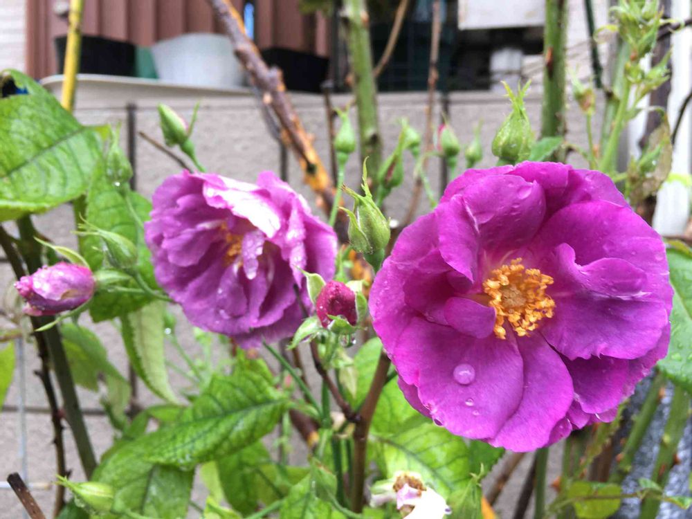 暑さに弱いけど〜、色も香りも魅力的なバラですね💜枝枯れ部分は、下手に✂️すると余計に枯れこむから、冬までこのままです😅