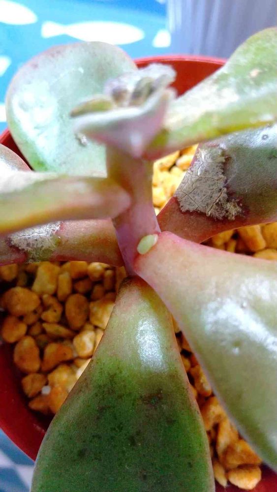 写真撮れなかったけど、成長点のすぐ下にもう1つそれっぽいのも確認、あと葉挿しももしかしたら1枚芽が出そうな子が。頑張ってるね(*´`)